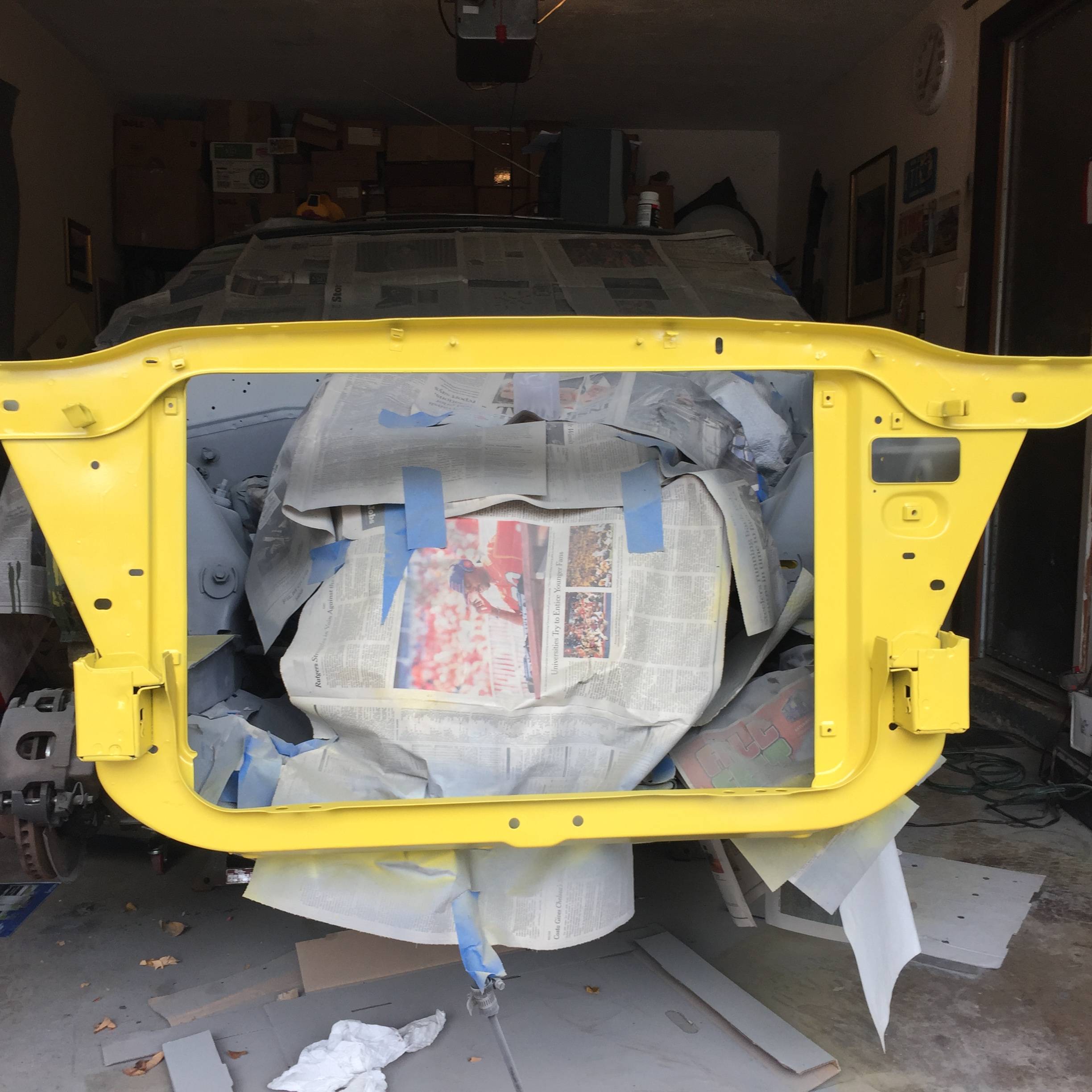 New photos show the radiator frame stripped, epoxied, primered and painted