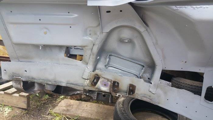 It came without a whole lot of missing parts such as sway bars, rear brakes and third member, doors' hardware and glasswork, propshaft, tail lights, mouldings, etc..