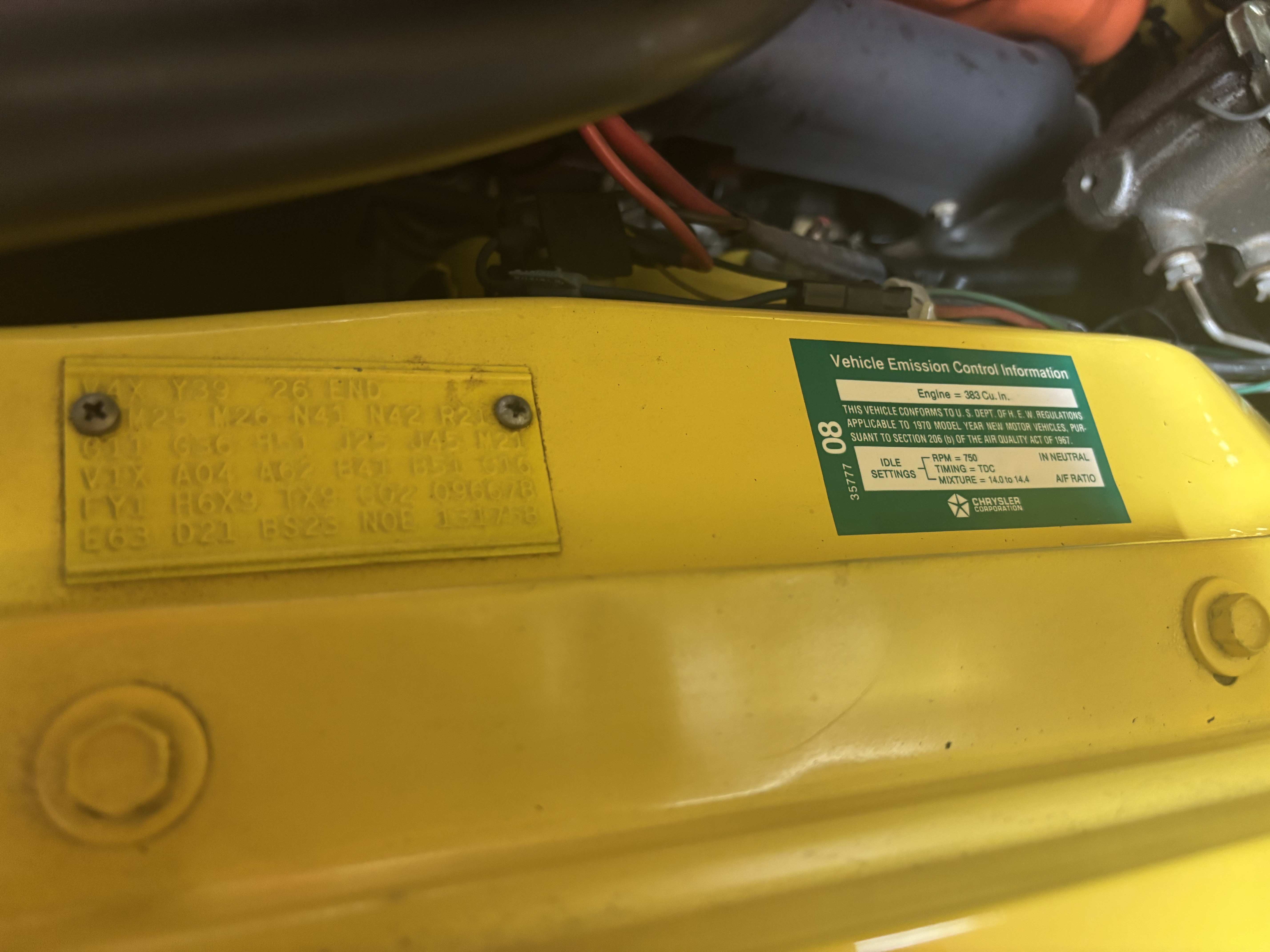 N (383) as well as the Door VIN decal and any other factory or state-issued paperwork for the car. The reproduction Dash VINs have font issues so changing the engine code to scam buyers is difficult.