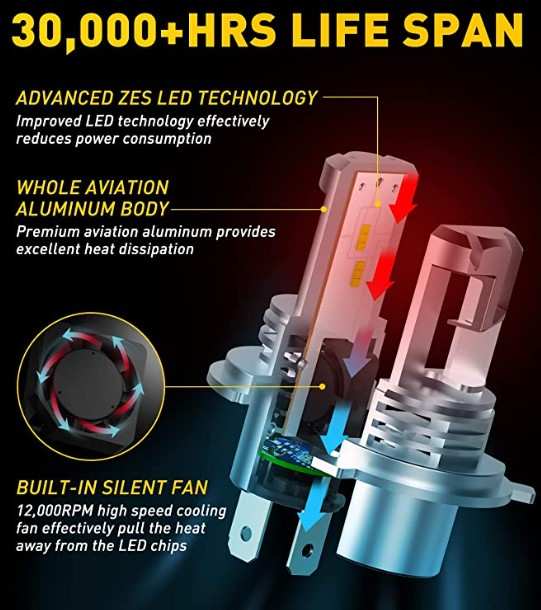 LED Bulbs: AUXITO H4 9003 HB2 LED Headlight Bulbs 15000lm 6500K Hi-Lo Beam (search Amazon).