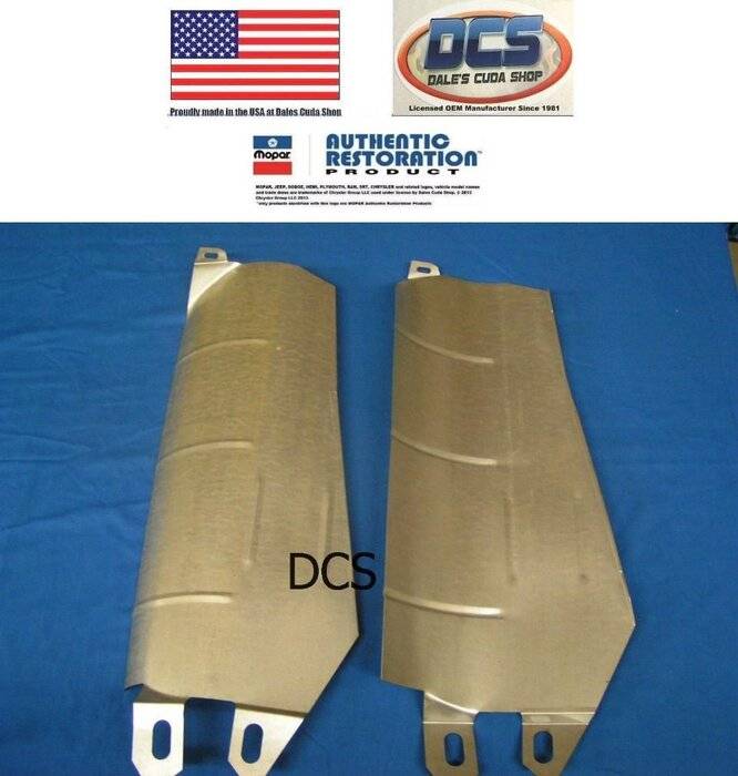 We are offering a correct OEM reproduction of the muffler heat shields that was originally mounted above the mufflers on your dual exhaust equipped E-Body. These pieces feature all of the factory bends and stamping marks. The price is $50.00 per pair plus the shipping. If any questions or concerns, please drop me a message at my email or a phone call at the contact information listed below.