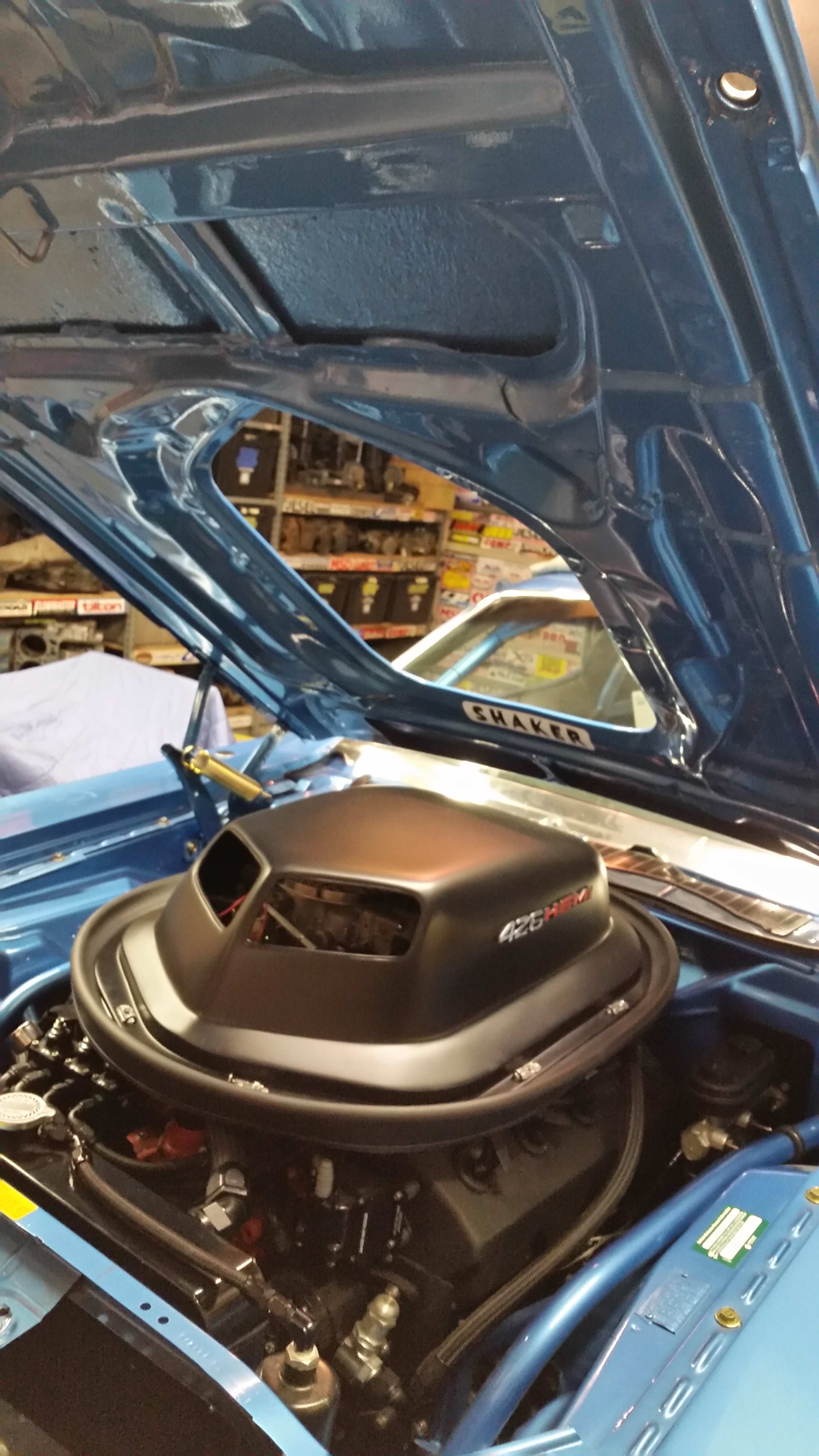 This is the challenger! The previous owner had an aftermarket hood on the car so the first thing I did was find a real hood, this one happened to be an R/T. It was green though to I just sprayed it a satin black, taking inspiration from the T/A's. I'm in the process of getting everything to rewire the car, and am looking for some black dog dishes to throw on there as well.