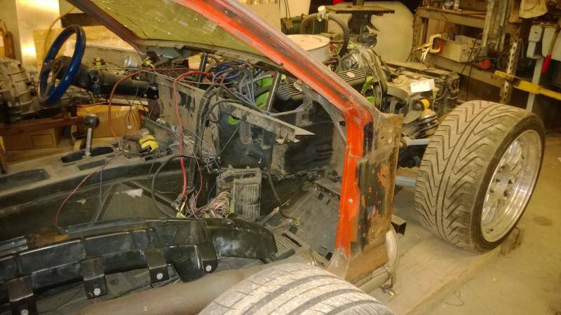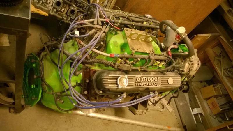 A lot of guys told me to put a Viper engine in it but I already had the 340 freshly rebuilt and wanted to see if I could get the F.I. system from a junked Dakota to work well enough to track the car. Surprisingly, runs really well for the bigger cubes. Might have to up the injector size a little.