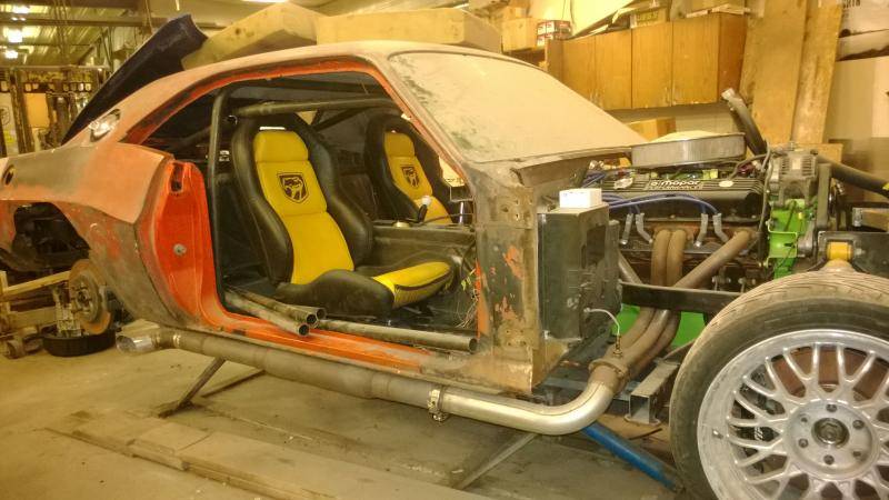Here's some pics of my Challenger project that is on hold because of the 67 Cuda I am building on FABO. I came to a stopping point last year because I needed to find quarters and fenders for the car. I have since gotten a good deal on both so now it's just waiting for room in the shop.