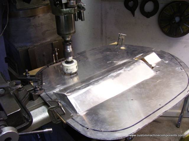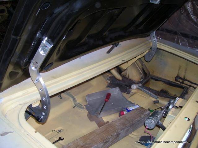 I added two gas lift cylinders for the trunk and made some new trunk hinges from solid 6061-T6 aluminum. The result is a much better trunk opening and closing