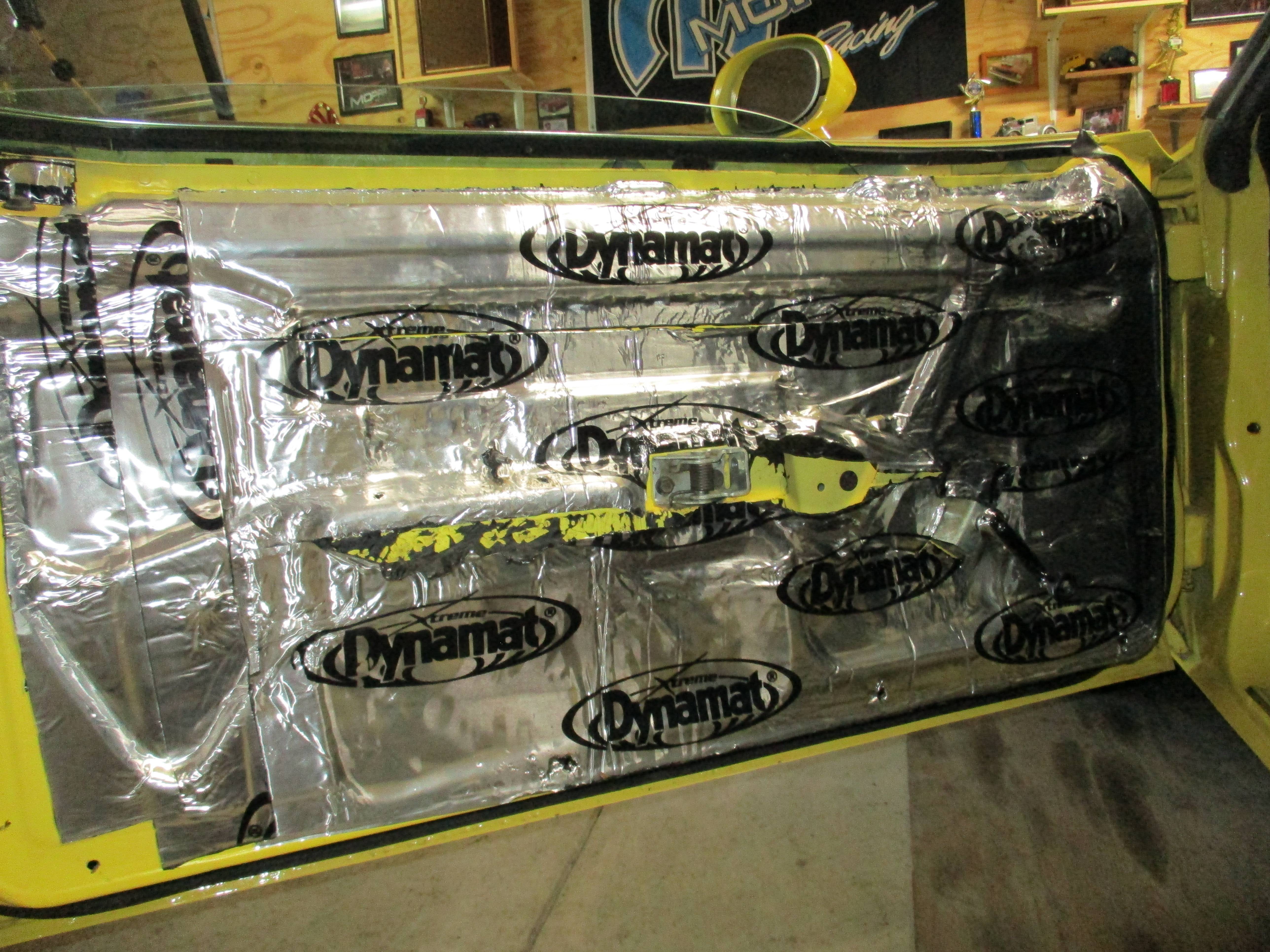 I found this application of sound deadening material interesting. When I did my doors, I applied the material to the outside wall of the door instead of like this. It was a real pain in the ass to apply inside the door but got coverage of most of the sheet metal. Any thoughts about whether this method or the method I used is more effective in sound deadening?Got the door panel off, stuck on the lock knob. Only to find another surprise. Man that stuff sticks.