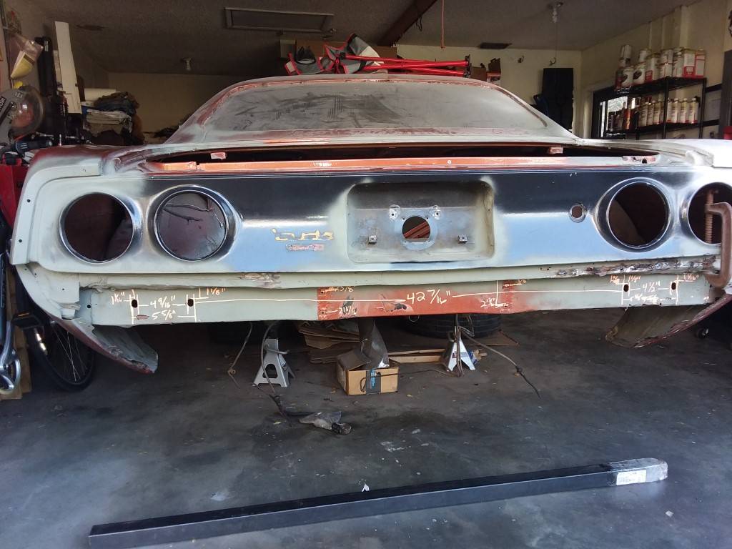 I need some HELP with the next piece! I started removing filler from the rear outside panels. I noticed that there is a gap between the outside quarter panel and the rear tail light panel. This does not seem right. Should the outer flange of the quarter panel be overlapping with the outer left tail light panel flange? Can someone with 70 - 74 check the lines on their tail light panel and let me know? This might explain why the trunk was somewhat off from the line on the quarter panels.