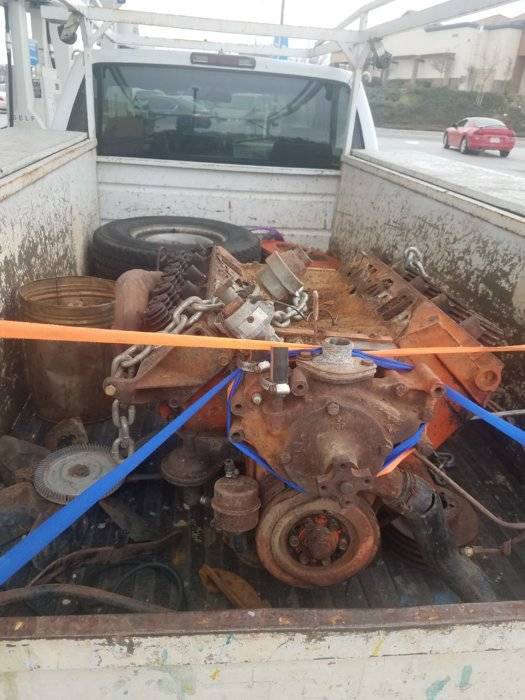 Wendy, finally returned. And, before I could get a word out of my mouth, she launched into the back story of the 440 of which you've already read. I wish I had the words to describe her. She was a real animated character. She was the type to sell a tin cup to a beggar with the aid of a sappy story. Well, while telling the rest of the tale Wendy began gathering up the strewn engine parts and placing them in a pile next to my truck. I said, "Hold on. Wait a minute. I'm not even sure this block is able to be rebuilt." Wendy said, "Of course it can be. It's perfect. I checked the dipstick and there's still oil in it."