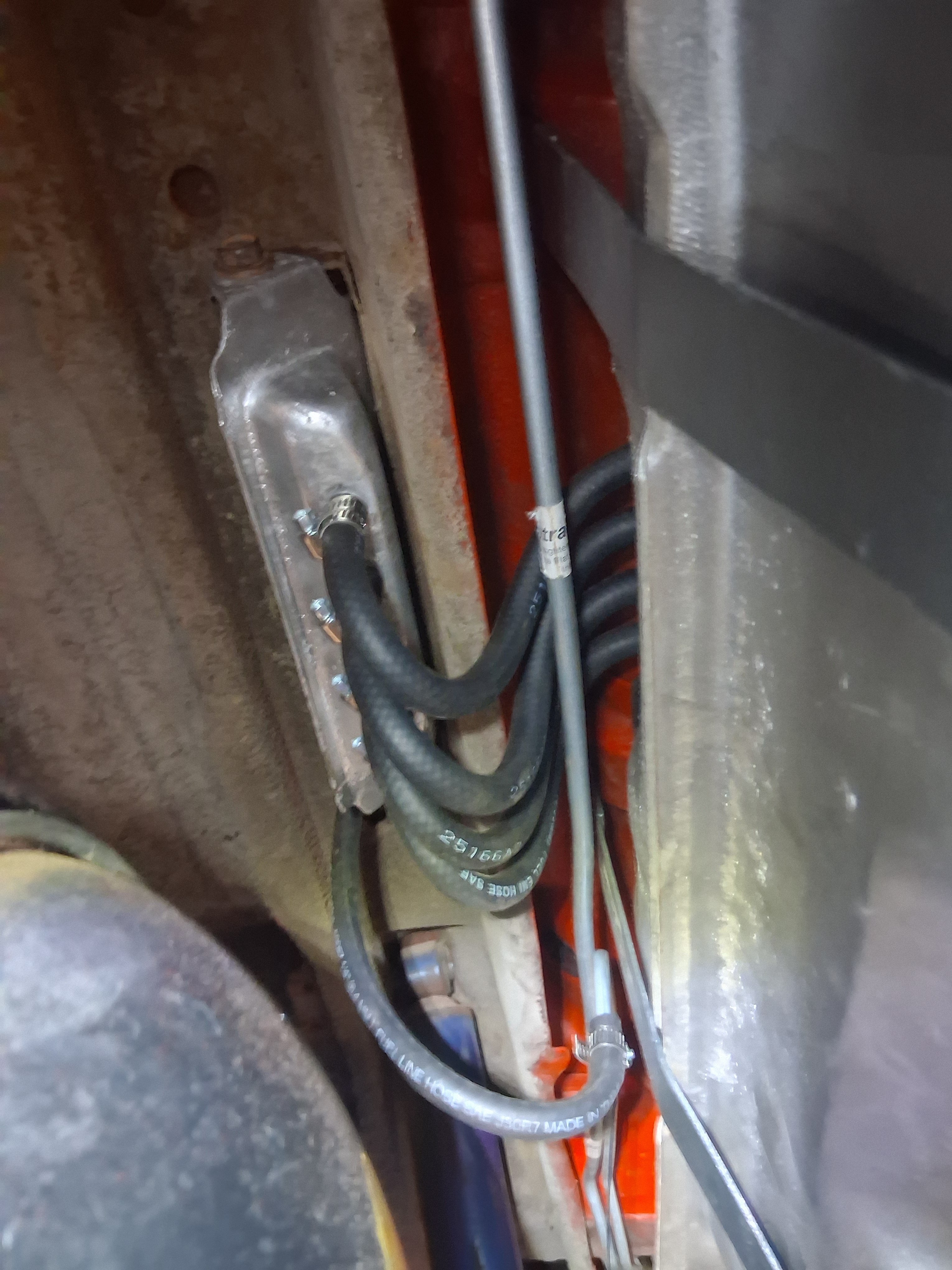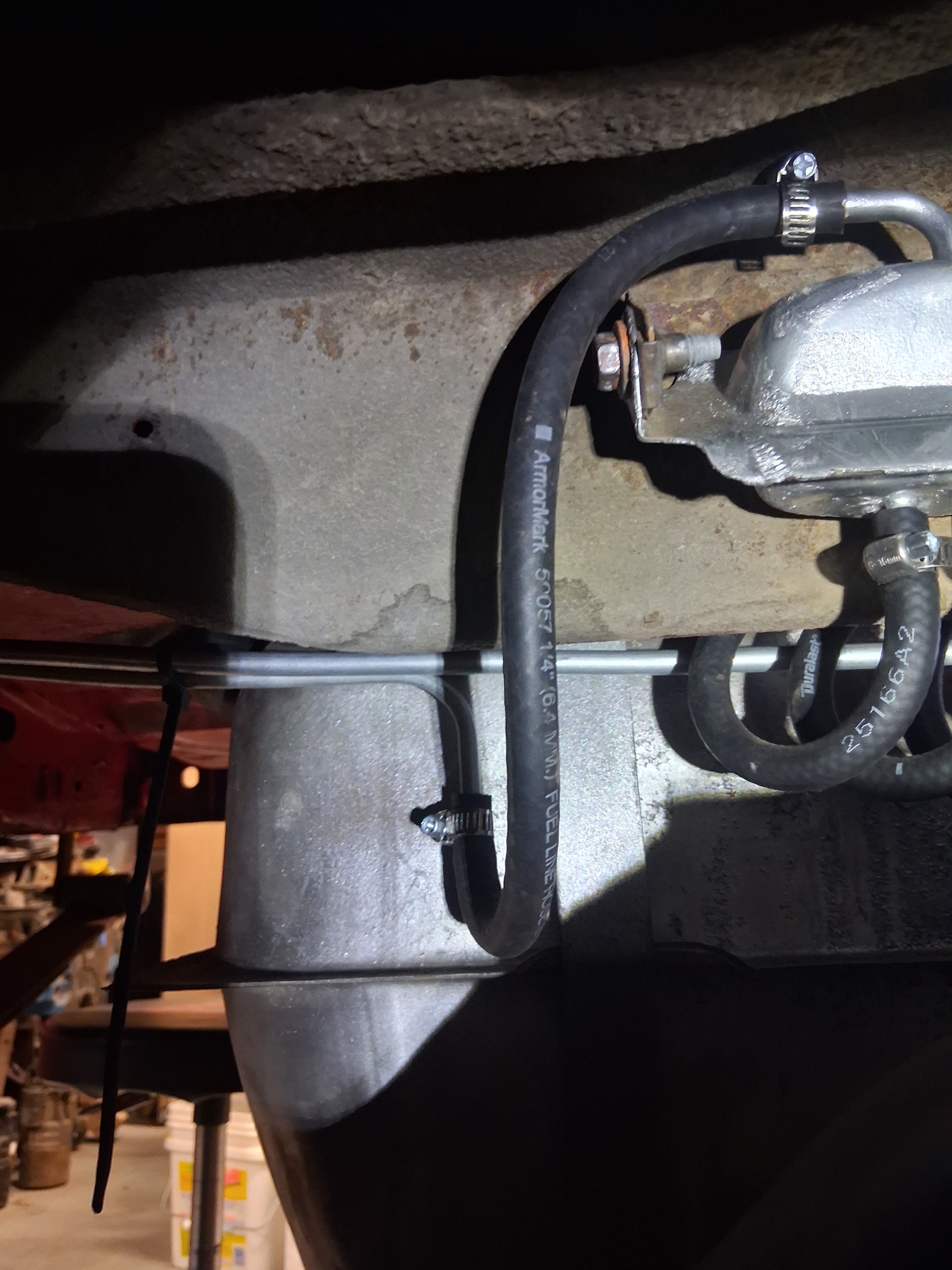 I can add a few photos of the Vapor-Liquid Separator as I just installed mine in my 72 Challenger several days ago. The single hose coming out of the top goes through the steel line to the charcoal canister located in the engine bay - in the 72 Challenger, it's next to the washer fluid bottle. My car is not a stock restoration so I used screw hose clamps. I hope this helps. I also recommend adding a separate ground wire to the fuel tank sending unit. I've never been satisfied with the ground provided by the stock strap visible in my photo.