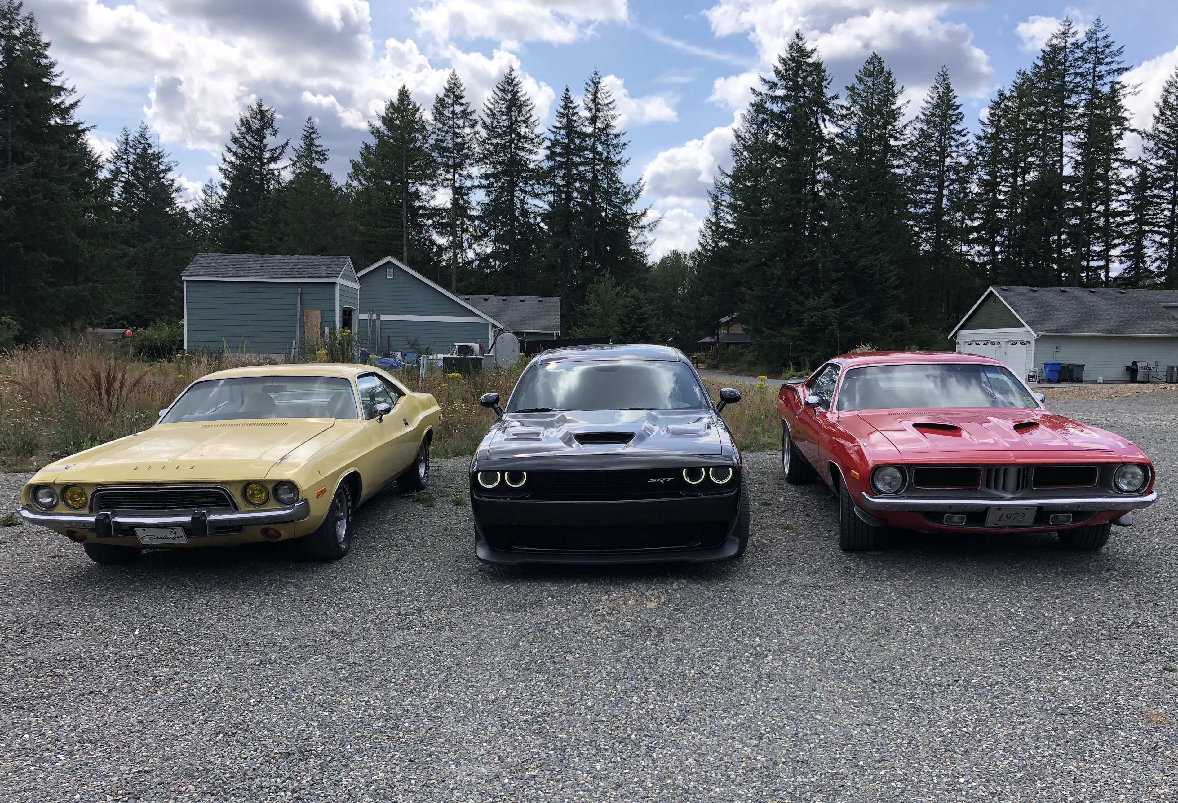 Very nice!!! We have a 2019 scat and a 2023 cat plus others in the family, absolutely zero problems with any of them. Make sure you use the pennzoil 0-40 srt oil in it, ebay is the cheapest place to buy it, change it twice as often as recommended. A set of Michelin ps4 tires will keep it out of the ditch. Tires are everything on these cars. Our 2019 scat is the best car we have ever owned, made us sell some of the old cars.OK, after literally spending all day yesterday with the trip there and back and time buying the car, my son wound up with a 2015 Challenger R/T Scat Pack! Redline Red Triple Pearl Coat with 20x9" black matte painted aluminum wheels (which are pretty rare and expensive!). 51,100 miles, no scratches and never in a wreck! I want to think all of you again for your advice testimonies and encouragement! We took some pics of his 2015 and my 1970!