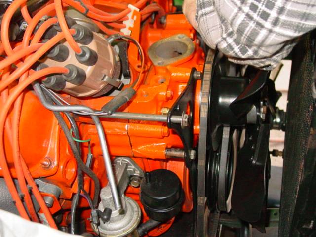 It is not hitting the fan pulley just alignment is off. I am using 440 source brackets, pulleys both crank and water pump? they align up, its just the pump pulley on the PS. It is a pump from my /6. Are the pumps different on V8's?